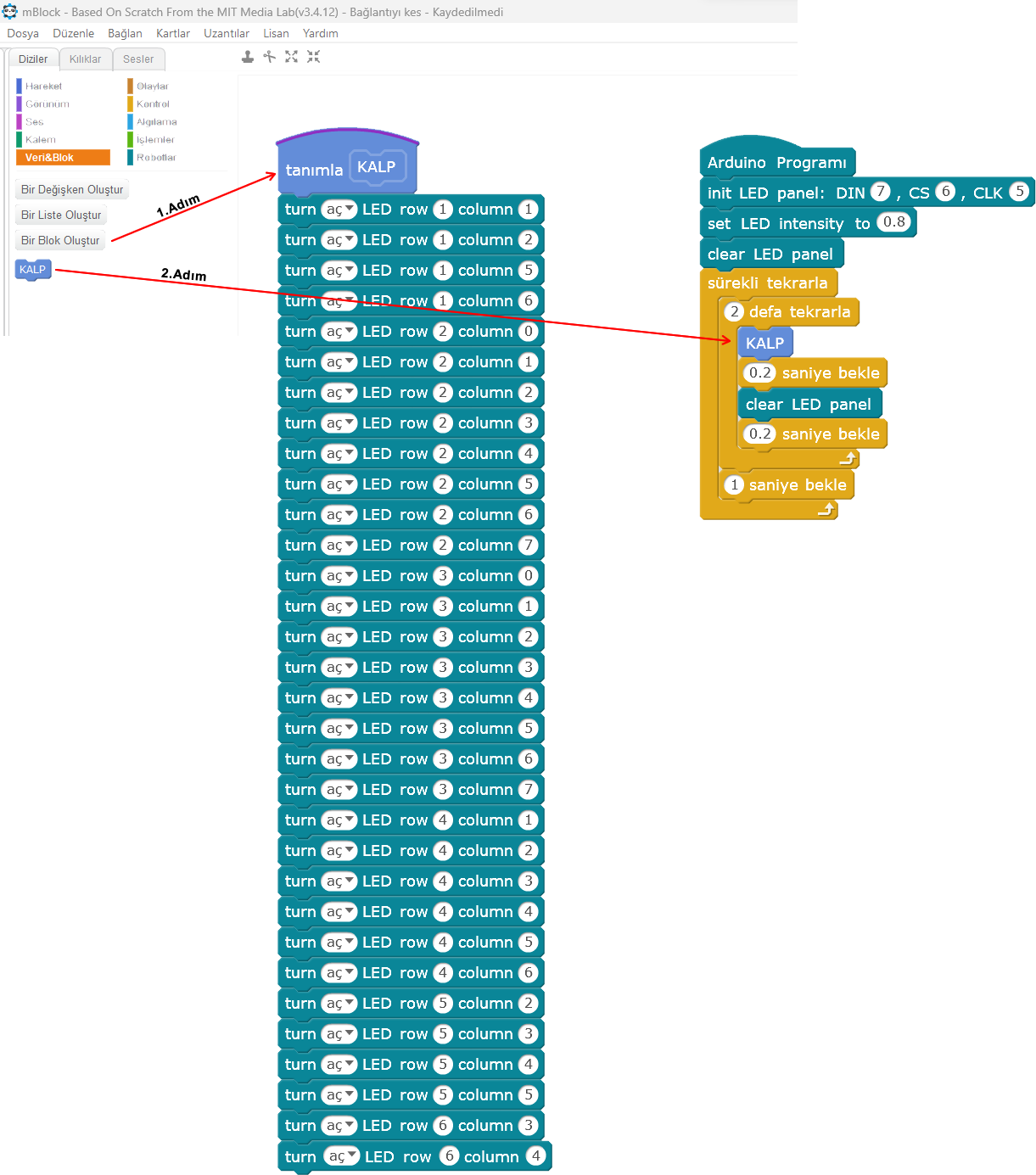 Bu işlem Mblock programının hangi kart seçildiyse o kart ile ilgili kodları görüntülemesini sağlar