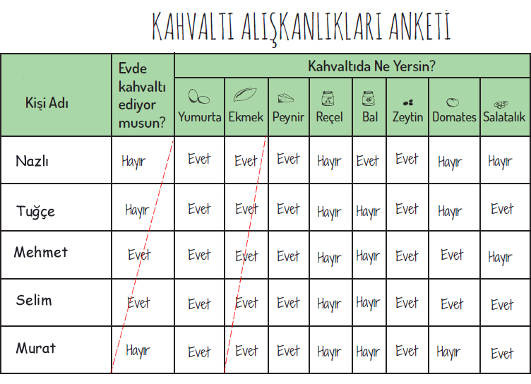 Ankette yer alan sabitleri ve değişkenleri bularak aşağıdaki örnekteki gibi defterinize doldurun.